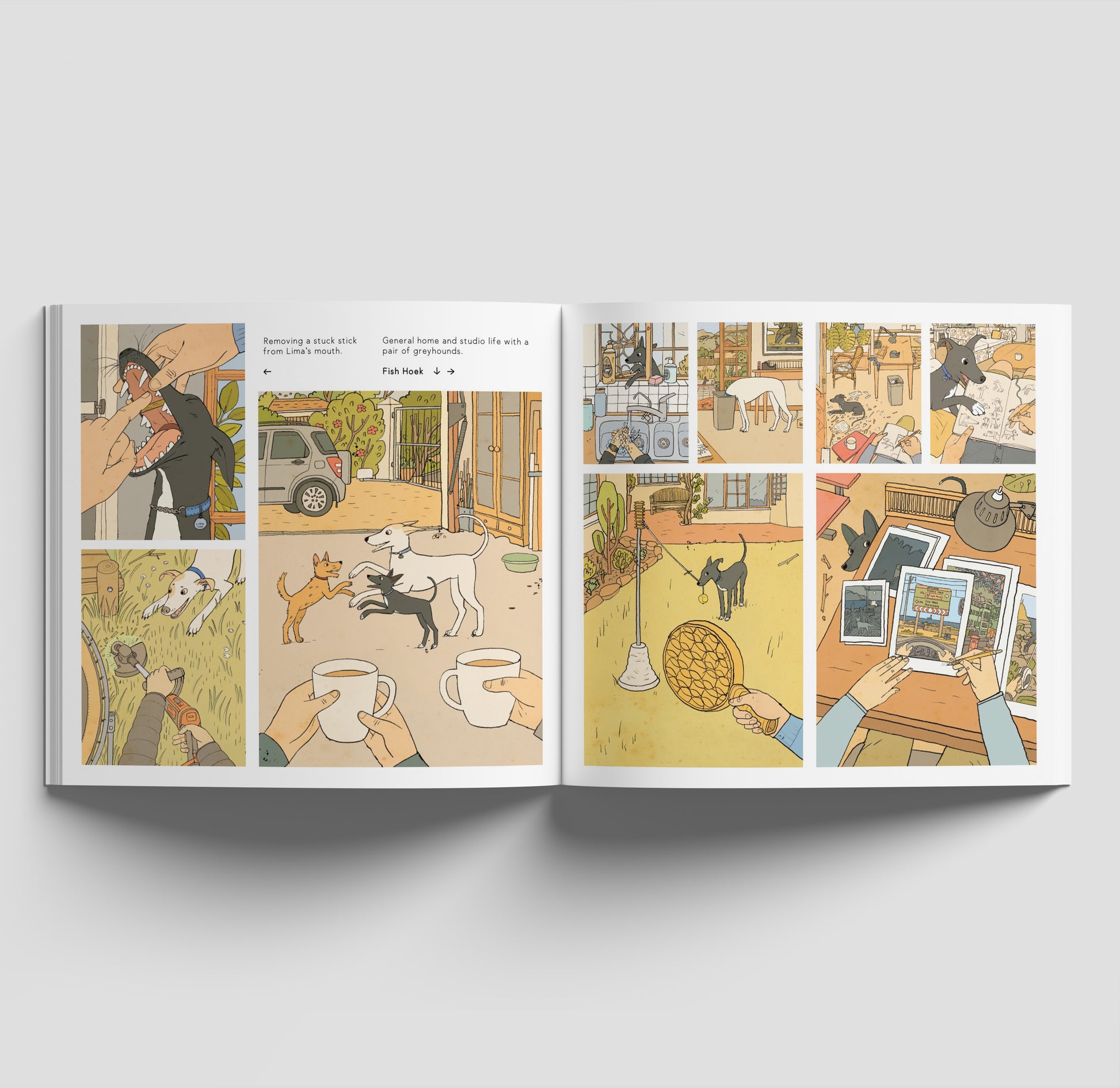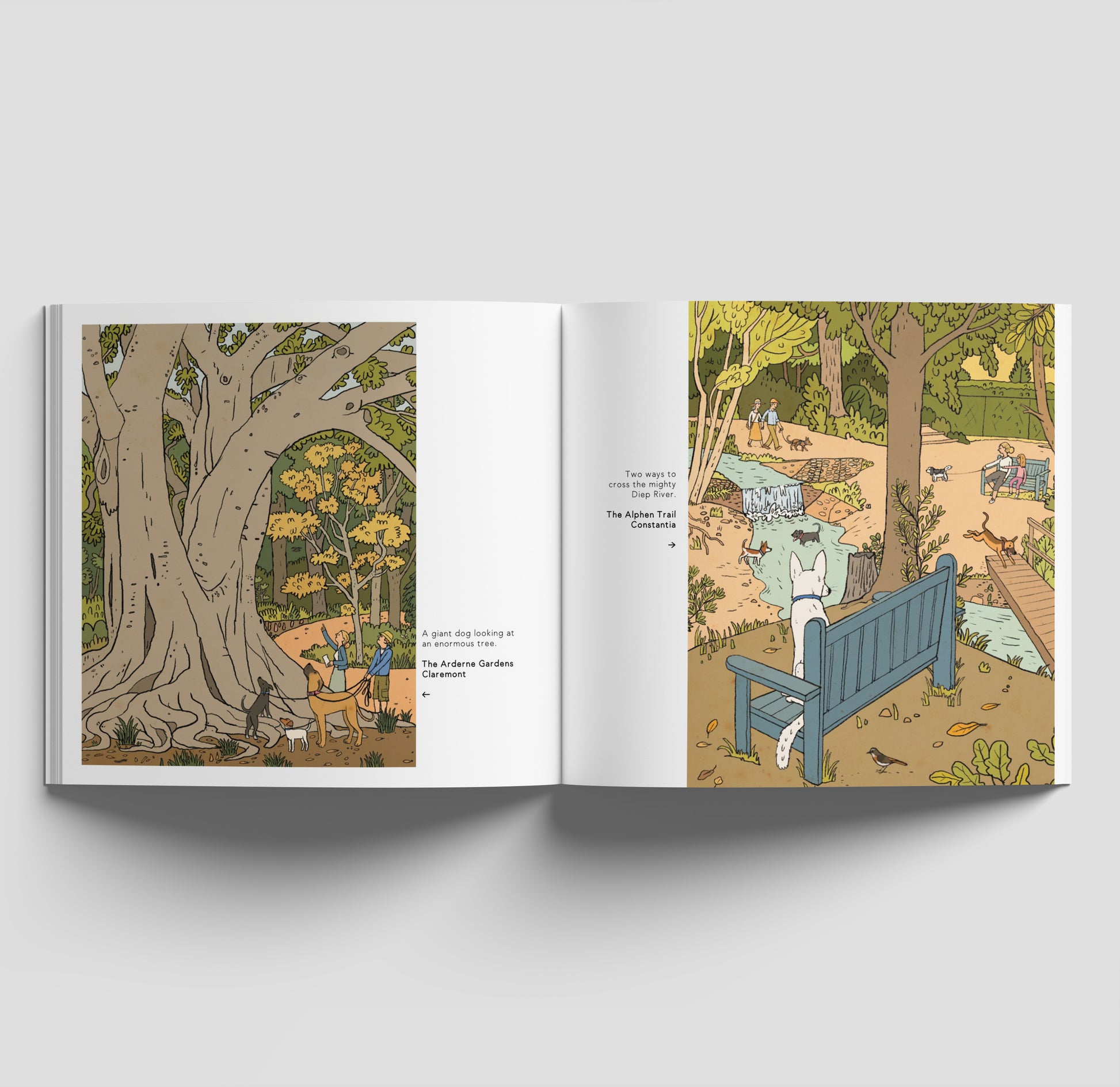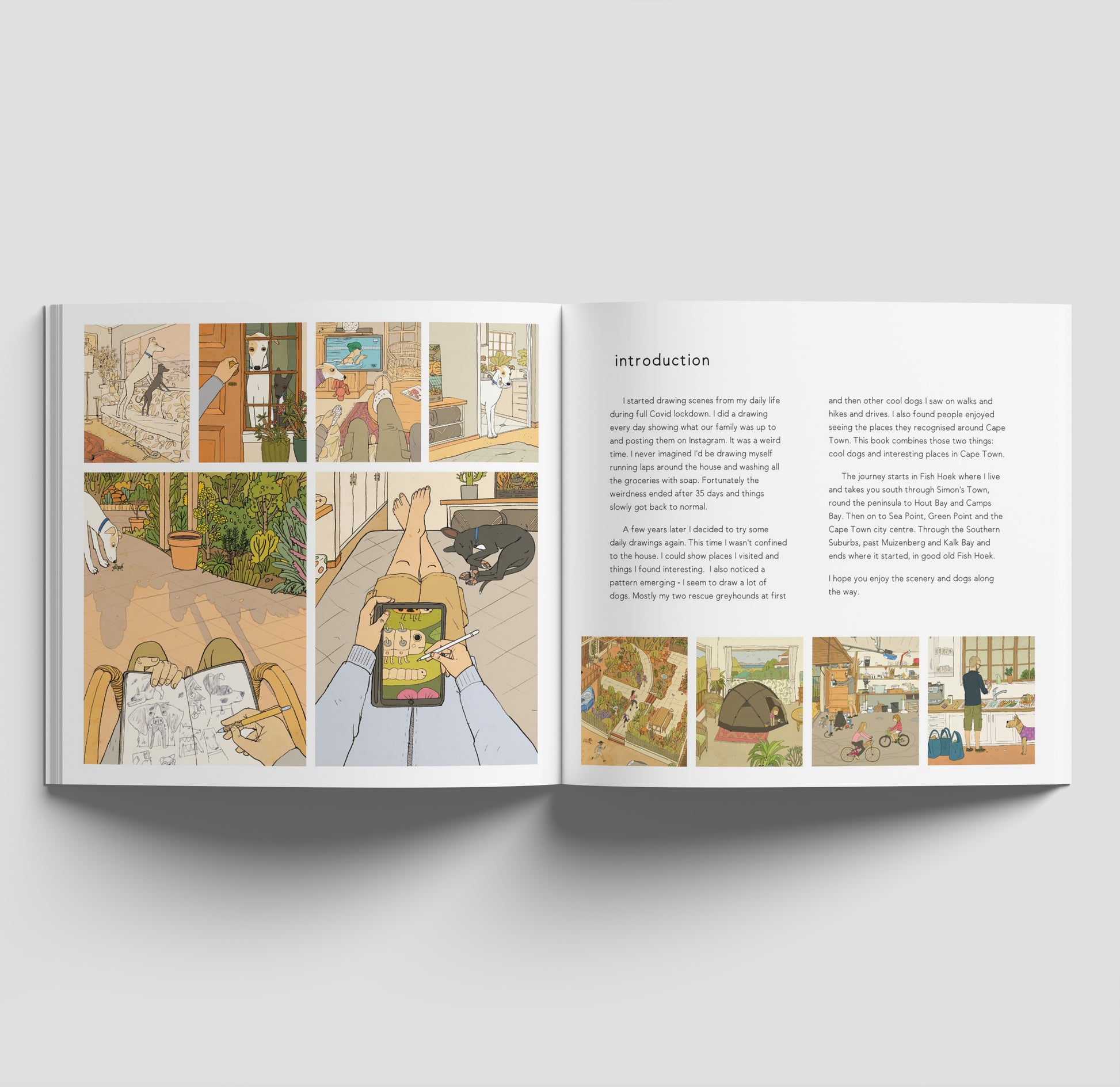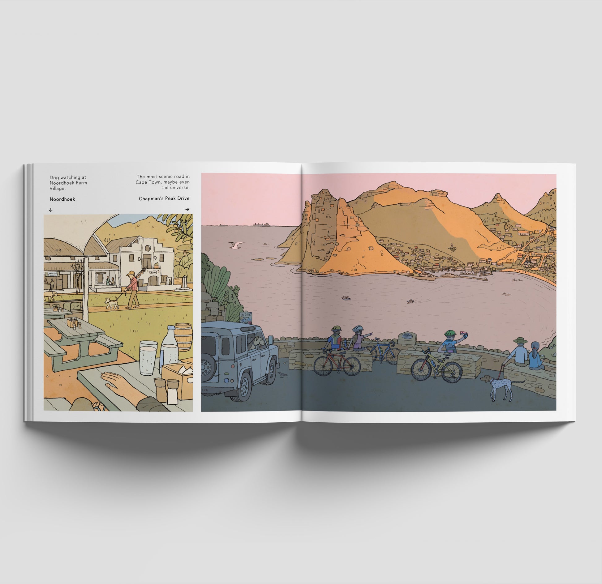 Illustrations of dogs and the favourite places in Cape Town.